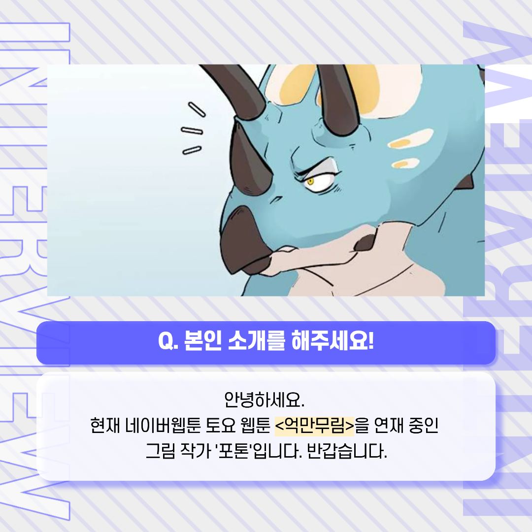 Æ÷Åæ ÀÛ°¡´ÔÀÇ ÀÎÅͺäÀÔ´Ï´Ù.