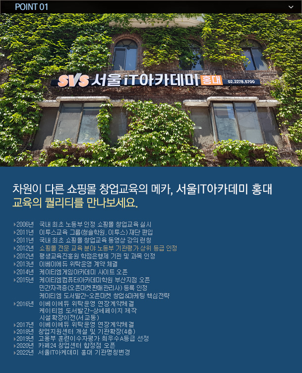 ÁÖ¿ä »ç¾÷ ´ÜÀ§´Â ¼¿ïIT¾ÆÄ«µ¥¹Ì È«´ë, À̺£ÀÌ¿¡µà±³À°¼¾ÅÍ, À¥Å÷ÆÊÀ¸·Î ±¸¼ºµÇ¾î ÀÖÀ¸¸ç,
